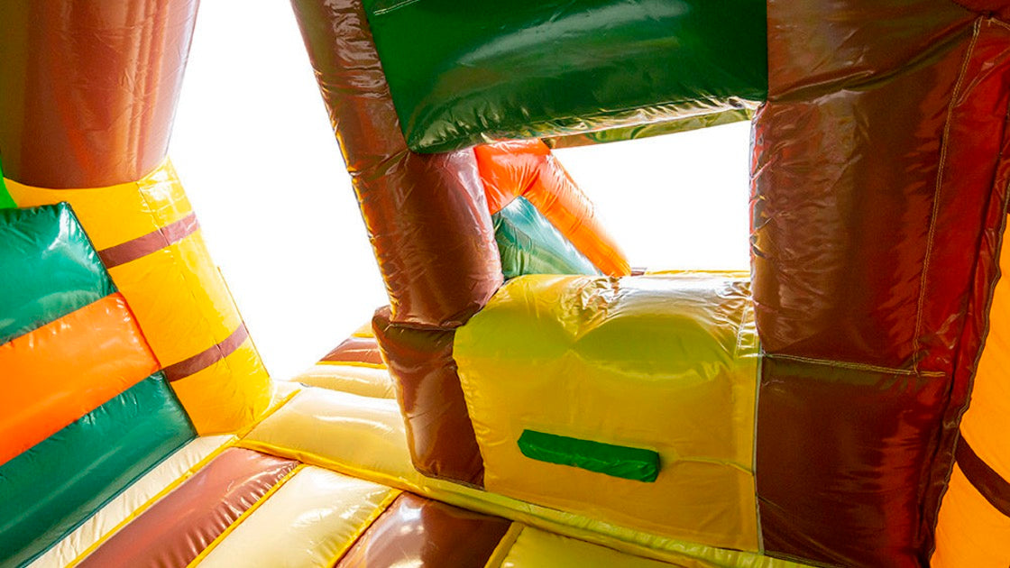 Echtes Dschungel-Feeling auf Eurem Kindergeburtstag, Gartenfest oder Firmenevent! Unsere Dschungel-Hüpfburg sorgt für strahlende Kinderaugen. Durch die eingebaute Rutsche ist langanhaltender Spielspaß garantiert.